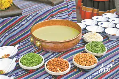 若逢亲友贵宾来访,瑶族东谈主家总可爱以作念法发达、用料丰富的油茶招待宾客。油茶的主料茶叶,首选茶树上助长的健嫩新梢,采回后经开水烫过、沥干待用,再放入油锅中翻炒、加水煮沸,滤出茶汤。由于制作费工费时且繁复,用油茶招待是一种高规格礼节,按当地民风,宾客喝油茶一般不少于三碗,叫“三碗不见外”。
